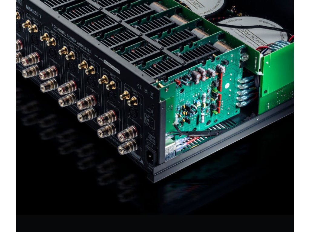 Super tichý napájecí transformátor distribuuje čistý výkon do zesilovačů, což má za následek vysoký dynamický rozsah a detailní zvukovou scénu. M6x 250.7 je díky tomu schopen zachovat všechny detaily a emoce, bez ohledu na hlasitost.