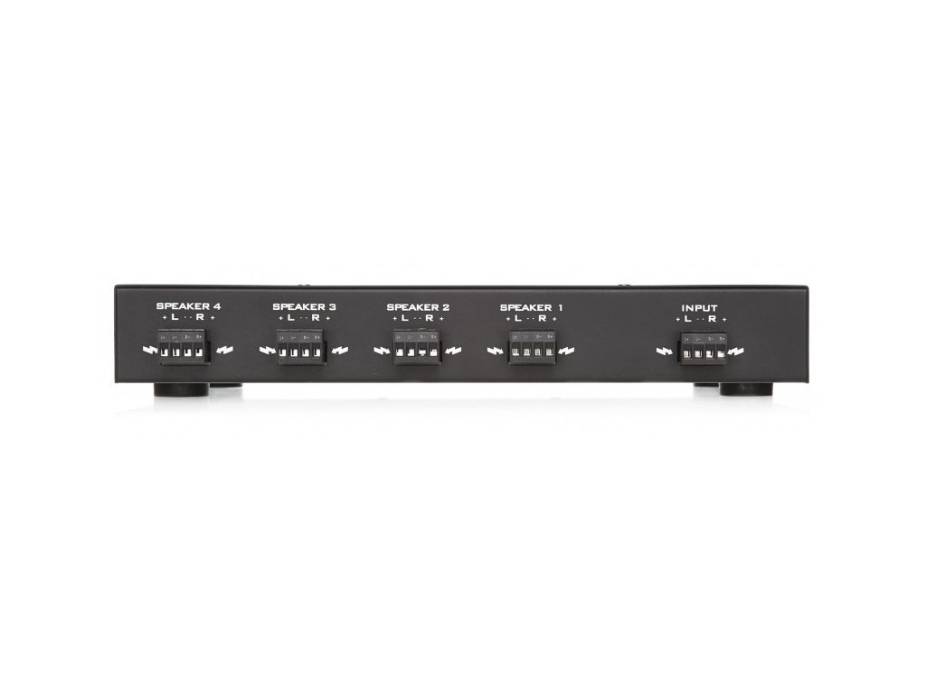 Praktické ovládací prvky na předním panelu rozbočovače umožňují samostatné nastavení úrovně hlasitosti každý pár reproduktorů. Takto můžete jednoduše vytvořit až 4 zóny s různou hlasitostí, případně je možné jednotlivé zóny úplně vypnout. Zařízení tak najde své uplatnění v mnoha aplikacích ať již v Hi-Fi systémech nebo v kacelářích, restauracích, případně při ozvučení společenských prostor.
