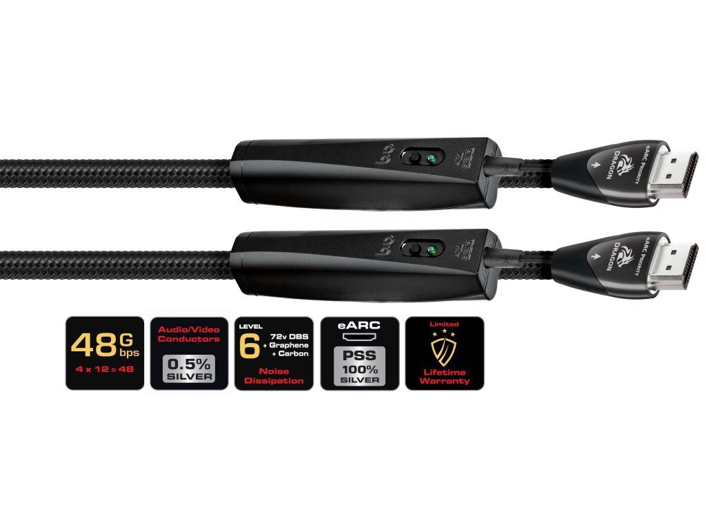 Kabel HDMI AudioQuest DRAGON eARC 8K - 10K, 48 Gbps, kombinuje špičkové materiály se špičkovou konstrukcí a zaručuje vynikající audiovizuální zážitek.
