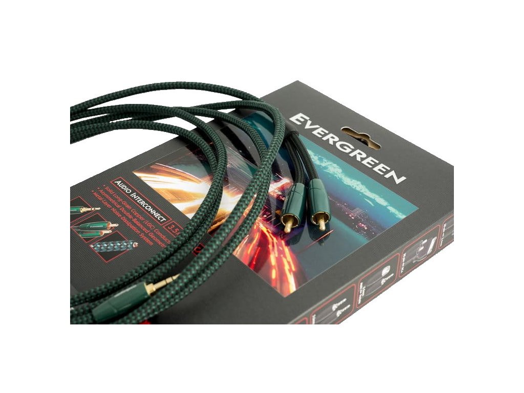 Evergreen, osvědčený audio kabel 1 × 3,5 mm jack stereo samec – 2 × RCA, disponuje pevnými vodiči z mědi s dlouhým zrnem (LGC). Tyto vodiče eliminují zkreslení tvořené vzájemnou interakcí jednotlivých vláken. Použitá měď přináší jasnější a jemnější zvuk než kabely z běžné OFHC mědi, protože obsahuje méně přechodů v rámci materiálu, méně nečistot a zcela jednoznačně podává lepší výkon.