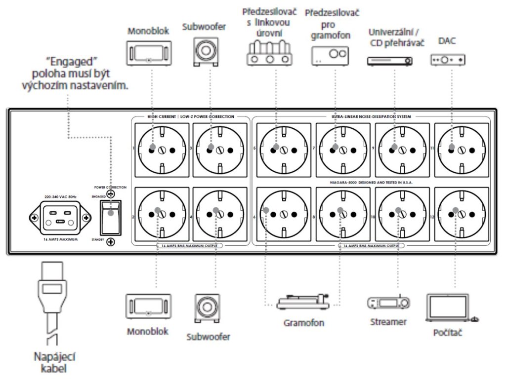 Niagara 5000EU disponuje čtyřmi napájecími zásuvkami “HIGH-CURRENT / LOW-Z POWER CORRECTION“. Tyto zásuvky jsou vybaveny technologií Transient Power Correction a jsou navrženy tak, aby se pomocí nízko-impedanční proudové rezervy pro špičky maximalizoval výkon napájených výkonových zesilovačů. Bez ohledu na třídu provozu (zesilovače třídy A, A/B, G, D atd.) nebo topologii obvodů (elektronkové, tranzistorové, digitální, nebo jiné), obvody pro přechodnou korekci výkonu nebudou komprimovat napájení jakéhokoli připojeného výkonového zesilovače. Právě naopak, výkon zesilovače se zlepší díky napájení proudem s nízkou impedancí, které každý zesilovač tak zoufale potřebuje.