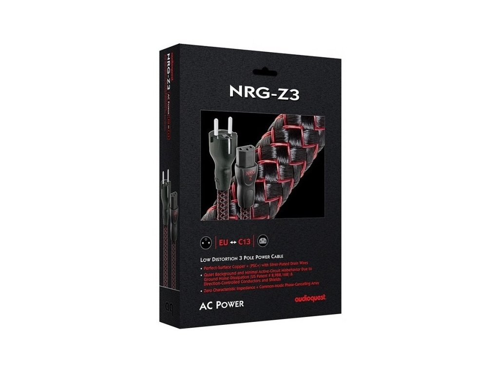 • NRG-Z3 také využívá technologii AudioQuest Ground Noise Dissipation Technology (US Patent # 8,988,168): Stejně jako u napájecích kabelů řady STORM, využívá NRG-Z3 systém rozptylu šumu Ground Noise Dissipation Technology. AC zemnící vodiče sice zajišťují ochranu před chybami sítě, ale zároveň působí jako anténa a zesilují tak vysokofrekvenční šum, který obchází napájecí zdroje a je obvykle směrován přímo do audio-video obvodů, tedy nejvíce citlivých částí systému. Patentovaný systém AudioQuest Ground Noise Dissipation Technology významně snižuje toto zkreslení, což zajišťuje bezprecedentní úroveň rozptylu šumu v nejširším pásmu radiových frekvencí. Výsledkem je tak dramaticky snížené zkreslení u připojené elektroniky.