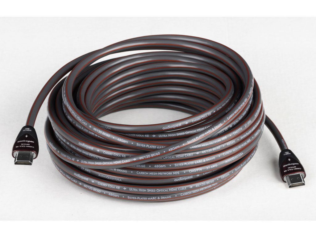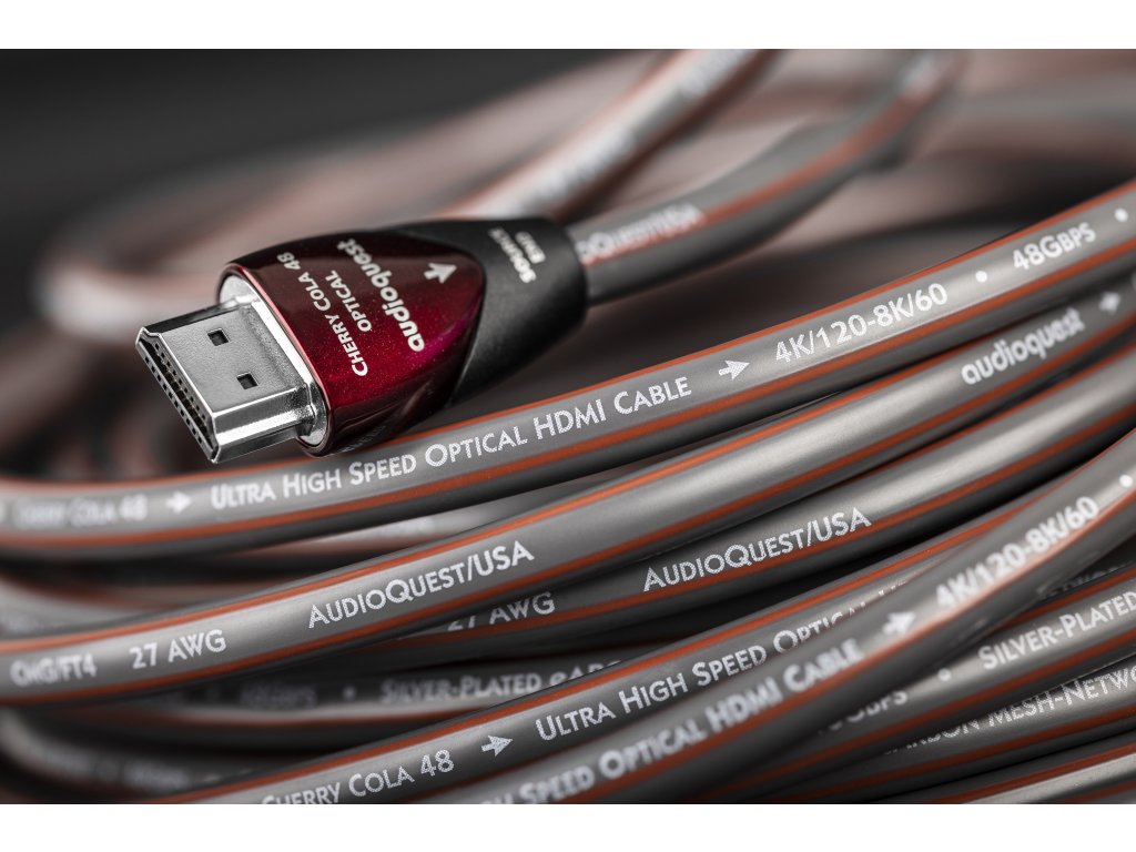 AudioQuest Cherry Cola 48 Active Optical HDMI je prvotřídní řešení společnosti AudioQuest pro aplikace HDMI s dlouhou délkou, které vyžadují plnou šířku pásma 48 Gbps/8K bez externího zdroje napájení. Bez ohledu na aktuální potřebu 4K/120 nebo 8K/60 nabízí Cherry Cola 48 vynikající výkon pro zdroje 10,2 Gb/s, 18 Gb/s i 48 Gb/s.