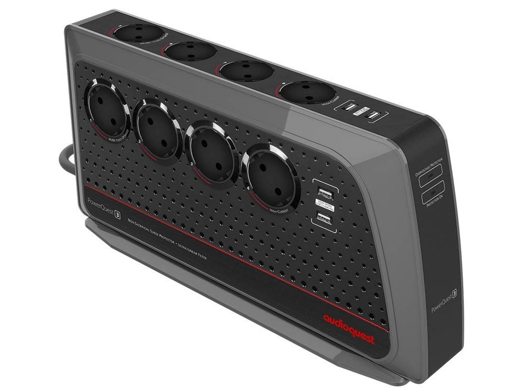 AudioQuest PowerQuest 3 filtruje rušení signálu pro audio i video přehrávače, zobrazovače i další části řetězce. Dvě z osmi zásuvek nejsou filtrovány a umožňují připojení vysoce výkonných komponentů (zesilovačů, subwooferů nebo aktivních reproduktorů bez aktuální komprese). 2 zásuvky mají výstupní ultra-lineární filtr optimalizovaný pro 4K / 8K video. Třešničkou na dortu jsou síťové vstupní a výstupní konektory RJ45 a čtyři vysokorychlostní nabíjecí porty USB, přes které můžete rychle nabíjet váš mobilní telefon, tablet, reproduktor Bluetooth, sluchátka a další.