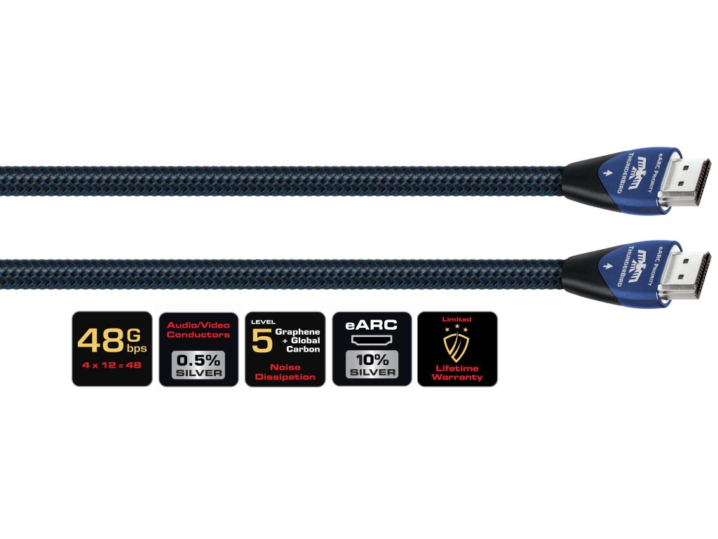 Kabel HDMI AudioQuest THUNDERBIRD eARC 8K - 10K, 48 Gbps, kombinuje špičkové materiály se špičkovou konstrukcí a zaručuje vynikající audiovizuální zážitek.