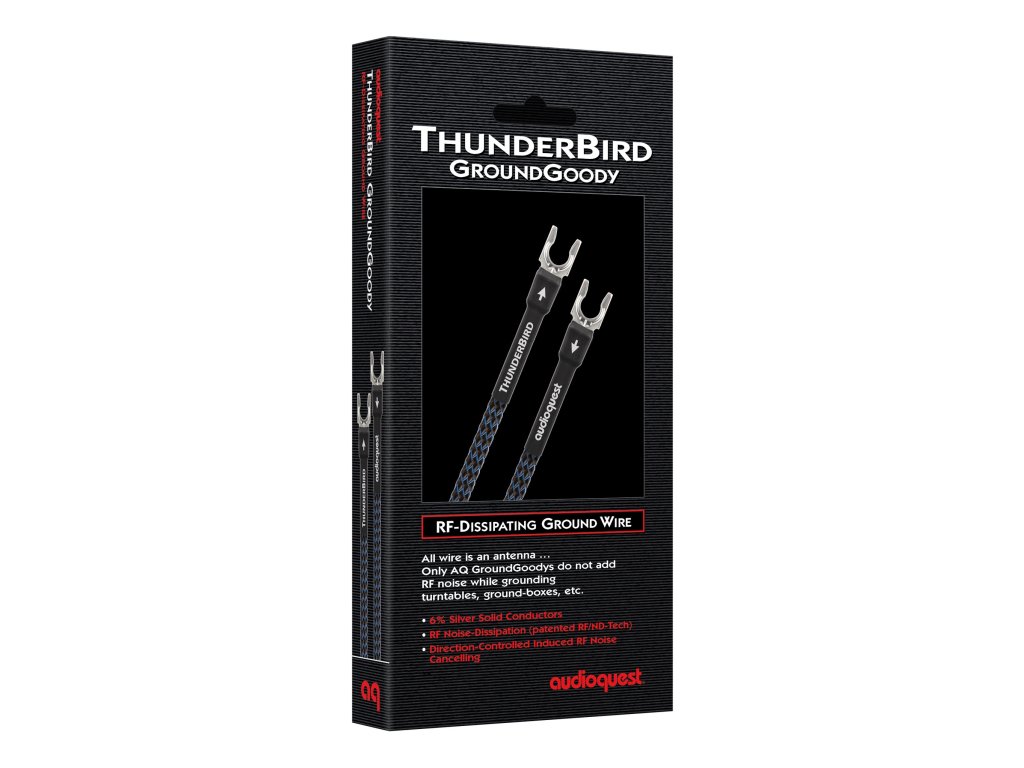 Zemnící vodič pro gramofony ThunderBird využívá prémiové materiály vodičů s technologií řízeného směru pro ještě lepší odvod šumu. Konektory jsou za studena pájeny k přímo postříbřeným vidličkám velikosti 10. Kromě toho technologie RF/ND rozptyluje a vyrušuje většinu indukovaného vysokofrekvenčního šumu.