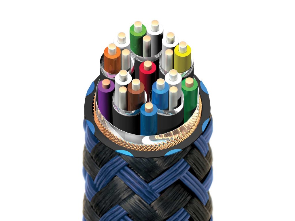 - Účinný systém pro rozptýlení šumu a vysokofrekvenčního rušení - ÚROVEŇ 3 - kolem každého ze 4 párů FRL a eARC vodičů je 1 stínící vrstva z kovu a 1 stínící vrstva z uhlíku