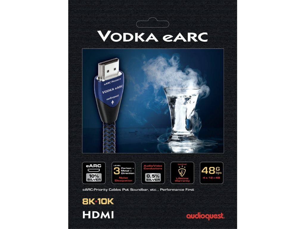 Kabel HDMI AudioQuest VODKA eARC 8K - 10K, 48 Gbps, kombinuje špičkové materiály se špičkovou konstrukcí a zaručuje vynikající audiovizuální zážitek.
