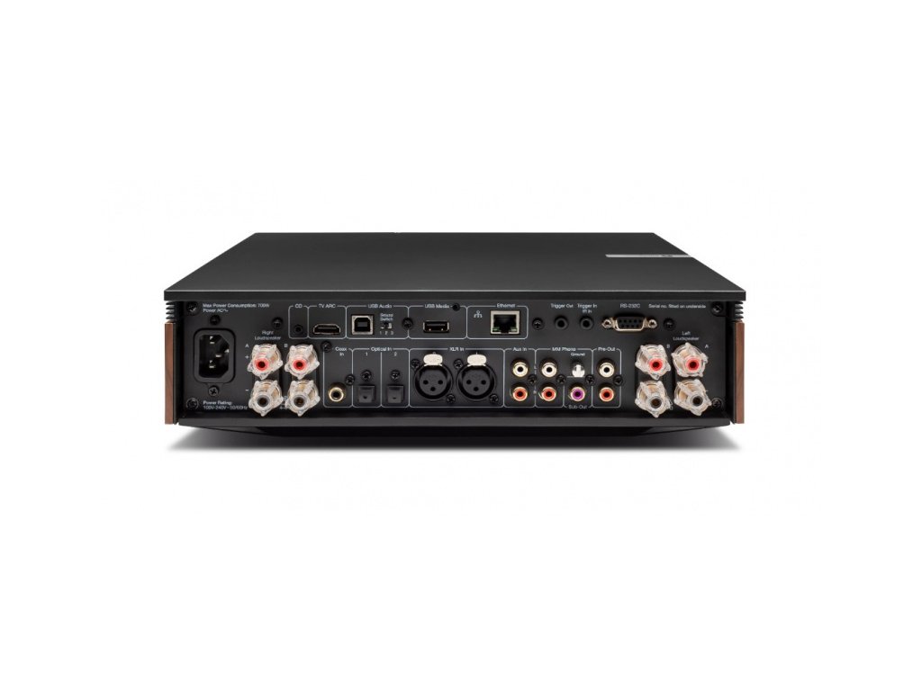Vstupy: 1x XLR, 1x RCA, 1x MM Phono, 1x USB-B, 1x USB-A, 1x HDMI ARC, 2x optický, 1x koaxiální