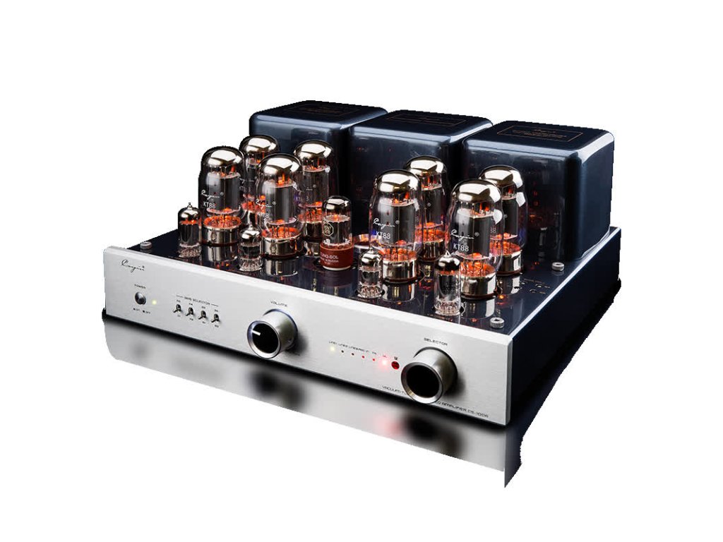 Tento lampový zesilovač patří k mezi špičku ve své cenové relaci Nejlepší ve své řadě Série CS vedle modelů CS-150A, CS-805A a CS-845A uvádí na trh unikátní jedinečný integrovaný lampový zesilovač CS-100A. Firemní návrhářská elita v něm využila nový duální elektronkový modul, dimenzovaný na 80 W na kanál v ultra-lineárním režimu třídy AB a 50 W na kanál v režimu triody.Je zkonstruován s měřičem zkreslení. Integrovaný zesilovač může také provozovat elektronky KT-88 nebo rodiny EL, přičemž mu nechybí stříbrné vnitřní vedení. Zesilovač CS-100A obsahuje elektronku 6SN7 sloužící k zesílení napětí, 12AU7EH pro fázovou inverzi/napěťové zesílení a 12BH7EH pro napěťové zesílení i stupně budiče, s výstupními elektronkami KT-88 nebo EL-34. Specifika konstrukční charakteristiky Cayin zajistil, že obvody Soft-Start chrání zesilovač a prodlužují životnost vnitřních součástek i elektronek. Dále nezapomněl ani na vysoce kvalitní ovládání hlasitosti ALPS, použil inovativní zvukové kondenzátory, rezistory z uhlíkové fólie, toroidní transformátor pro napájení a širokopásmové výstupní transformátory EI jsou všechny standardní.Doplňkové parametry