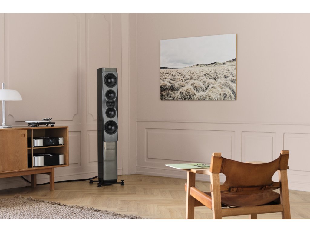 S velkou mocí přichází i velká zodpovědnost. Proto jsou tyto velké podlahové reproduktory rovněž schopny rozechvět místnost jako reprodukovat ty nejjemnější detaily. Model Confidence 50 je výškově srovnatelný s modelem Confidence C4 – předchozí vlajkovou lodí této proslulé série. Základem těchto sebevědomých sloupů je výškový měnič Esotar 3, který využívá poznatků získaných během vývoje oceňované jednotky Esotar Forty – včetně technologie optimalizovaného proudění vzduchu, vylepšené konstrukce neodymového magnetu a důmyslné vnitřní kopule Hexis. O druhou stranu frekvenčního spektra se starají dva vynovené 180 mm středobasy NeoTec MSP vybavené výkonným neodymovým magnetickým systémem a velmi důmyslnou technologií proudění vzduchu. Ve srovnání s nižšími modely série je Contour 50 doplněn také dvěma dodatečnými 150 mm měniči, které se starají čistě středové tóny. Vše je přitom pevně uchyceno v mimořádně rigidní a akusticky neutrální kompozitní ozvučnici Compex. Výsledkem je reproduktor, který zní přesně tak, jak váš oblíbený interpret. Nic víc, nic méně. Jejich přenádherný dánský rukopis se podepsal nejen na zvukové, ale také vizuální stránce. Netradiční a odvážné tělo reproduktoru nemusí vůbec prosit o pozornost – bez dotazu se stane dominantou jakékoli místnosti a nažene husí kůži ještě dříve, než uslyšíte první tón. No a když se Confidence rozehraje, tady nám slova nepostačí... high-end sloupové reproduktory ze série Confidence 28 mm výškový měnič Esotar 3 s hedvábnou kalotou dva 150 mm středové měniče s technologií Horizon Surround dva 180 mm středobasové měniče NeoTec MSP ze skleněných vláken sebevědomý design ve čtyřech luxusních povrchových provedeních navrženy a zkonstruovány v laboratořích Dynaudio v Dánsku +Esotar 3 Nový výškový měnič Esotar 3 využívá více než 40 let zkušeností společnosti Dynaudio a technologie z oceňované jednotky Esotar Forty – spojuje je do nejlepšího výškového měniče, jaký kdy Dynaudio vytvořilo. +NeoTec MSP Odvážné 180 mm středobasy s pevnými neodymovými magnety a membránou ze skleněných vláken. Měniče byly navrženy tak, aby využívaly proudění vzduchu pomocí inovativního ventilačního systému, který byl opracován přímo do magnetu. +Navržené a vyvinuté v Dánsku Celá série Confidence prošla intenzivním testováním v měřicím zařízení Jupiter v laboratořích Dynaudio Labs. Výsledkem stovek hodin analýz a poslechu je nejlepší reproduktor, jaký kdy značka vytvořila.Doplňkové parametry