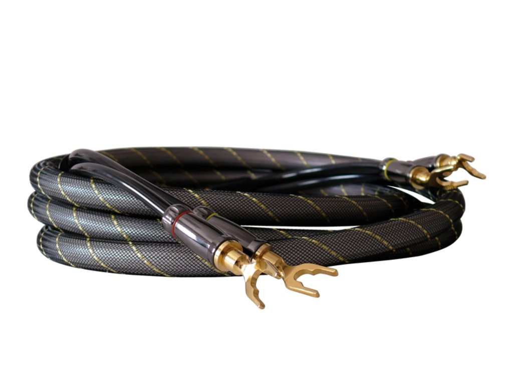 Sada kabelů pro moderní reproduktory. Vysoce kvalitní kabel pro připojení reprosoustav z řady PREMIUM. Vnitřní vodič OFC-měď (6 x 40 pramenů na kanál), odpor vedení 3,8 ohm / km. S vyměnitelnými 24K pozlacenými, šroubovanými konektory. Vidličky i reproduktorové banánky jsou součástí příslušenství.