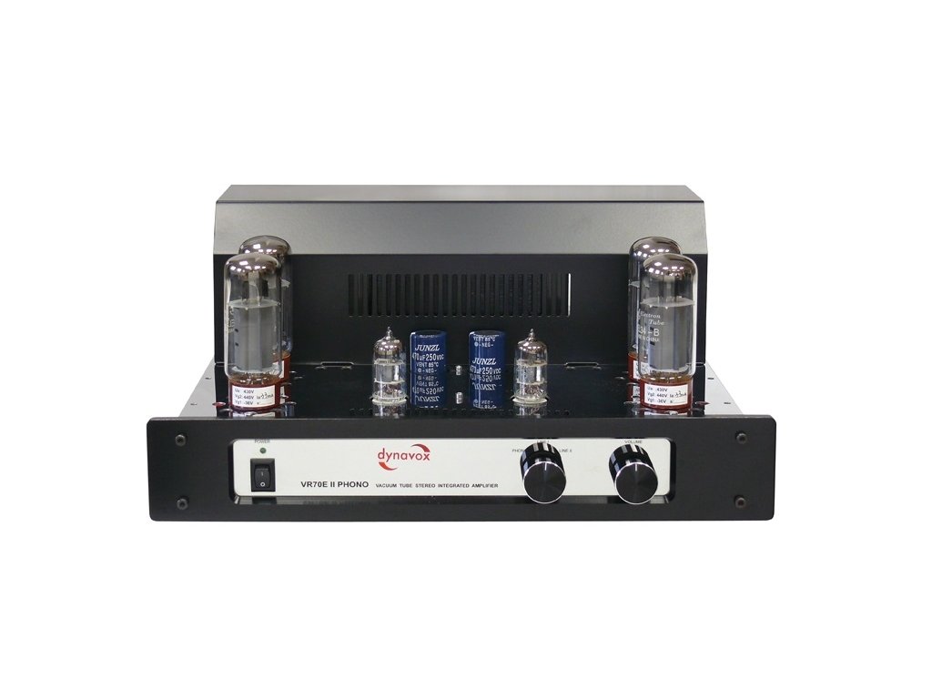 Dynavox VR-70E II Phono je novinkou 2019 a updradem VR70E II. Upgrade s označem "Phono" zahrnuje 2 další vstupy, z nichž jeden je čistý Phono vstup pro gramofonový přístroj (přepínatelný MM / MC). Jinak úspěšné zařízení zůstane ve svých technických údajích nezměněno: 3 vstupy a připojení reproduktorů pro 4 a 8 ohmů, 2 x 40 W RMS ve frekvenčním rozsahu 10 Hz - 40 kHz. Osazený je elektronkami: 4 x EL34 (Ultralinear obvod) pro finální fázi, 2 x 6F2 (ECF82) pro předstupeň a fázovou inverzi. Lze také použít jako výkonový zesilovač spolu s elektronkovým předzesilovačem TPR-1 (BN204244 nebo BN204242). Dodává se s odnímatelnou ochrannou mřížkou.