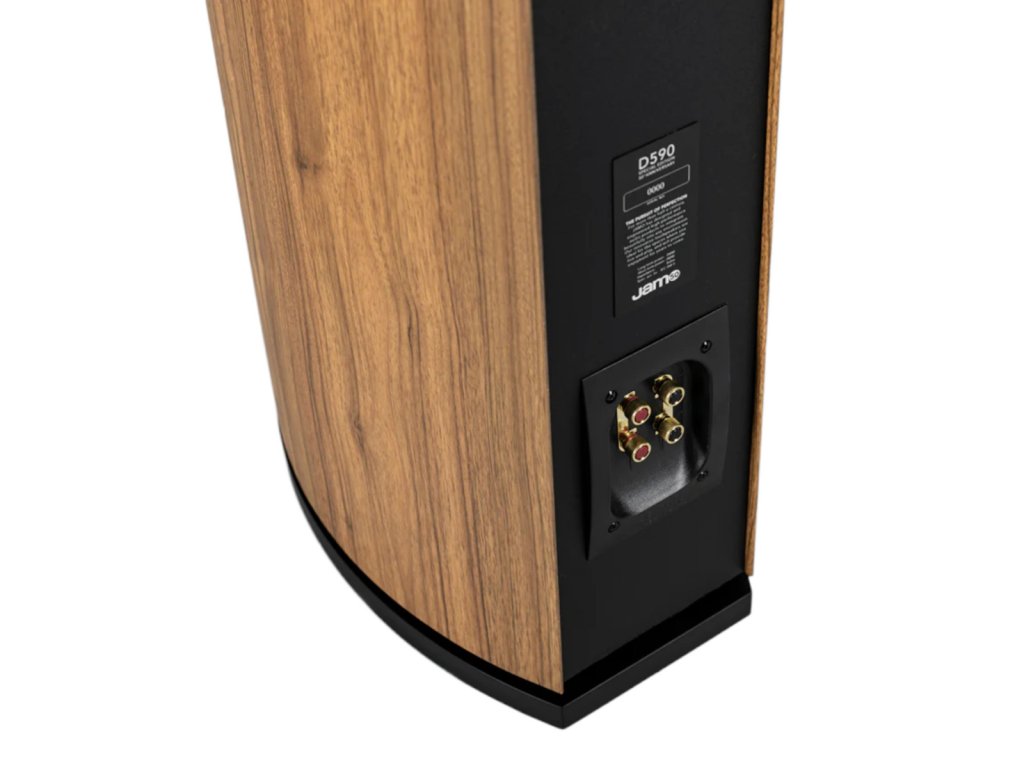 Pořádné reproduktory pro náročné posluchače Precizní 3pásmová konfigurace pro plnou paletu tónů V srdci reproduktoru najdete měkkou 25 mm výškovou kopulku s vlnovodovou úpravou, dvojici 5" středových měničů a mohutný 8" basový reproduktor směrovaný dolů – v tzv. D’Appolito uspořádání. Díky tomu poskytuje D 590 SE hluboké, bohaté basy, čisté středy a jemné výšky. Kvalita konstrukce a konektorové možnosti Reproduktory jsou elegantně zaoblené a vyrobeny z MDF s kvalitní dýhou, včetně bas-reflex portu s integrovanou platformou. Přední magnetická látková mřížka podporuje čistý vzhled. Na zadním panelu naleznete bi-ampingové / bi-wiringové pozlacené terminály, což umožňuje napárovat reproduktor dvěma zesilovači pro ještě detailnější reprodukci.Doplňkové parametry