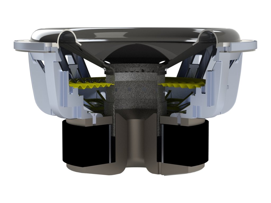 • 12" basový reproduktor směrovaný dopředu s membránou z celulózových vláken potažených polymerem