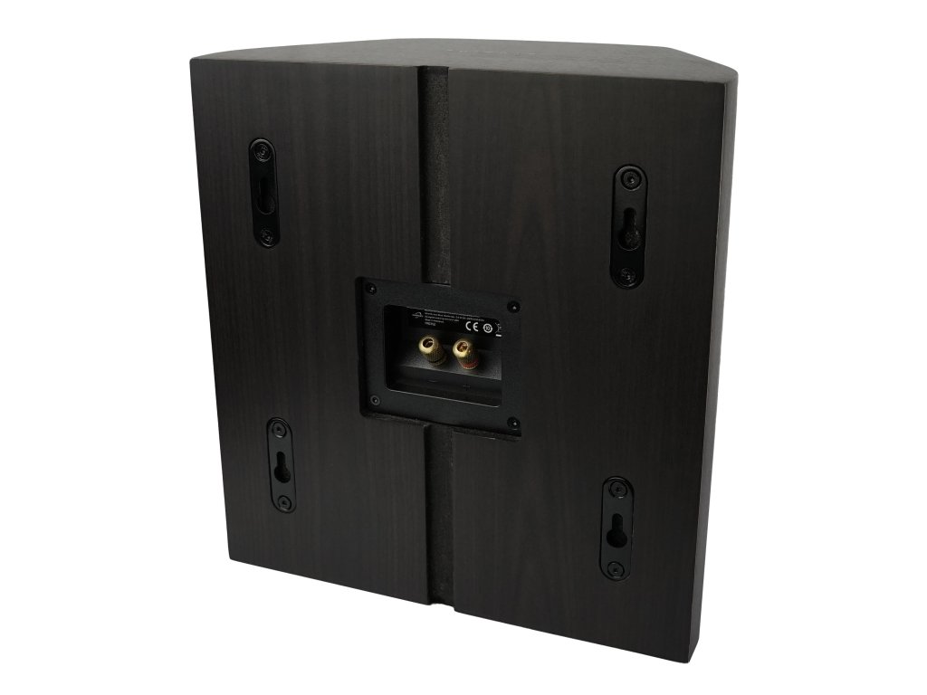 Specifický design kabinetu s lichoběžníkovým půdorysem je přizpůsoben k instalaci na stěnu po stranách posluchače nebo za ním, jako reproduktor pro prostorové kanály. Uzavřená ozvučnice má ultra nízký profil (15 cm) a na zadní straně jsou předinstalovány 4 držáky s klíčovou dírkou, které umožňují jednoduchou a snadnou instalaci na stěnu. Reproduktor představuje decentní a estetický prvek vhodný do každé místnosti. Konstrukce ozvučnice je (i díky svému tvaru) dostatečně robustní (hmotnost 5,86 kg / kus) a vnitřně zatlumená, aby dobře odolávala rezonancím a vnitřnímu stojatému vlnění. Nemusíte se tedy obávat otočit ovladačem úrovně hlasitosti k vyšším hladinám, protože reproduktor zvládá i vysoké výkony (max. 100 W) a přináší i v náročných podmínkách nezkreslený zvuk. Dvojice zlacených šroubovacích terminálů na zadní straně umožňuje jednoduché připojení pomocí banánků, vidliček nebo holých silných vodičů.