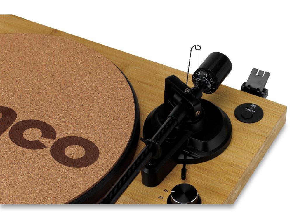 Hi-Fi gramofon s Bluetooth vysílačem, přenoskou Ortofon 2M Red a korpusem z bambusu
