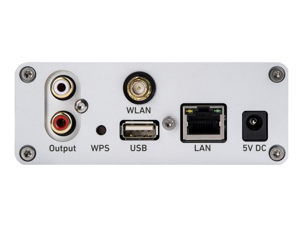Kromě analogového výstupu s linkovou úrovní signálu, nabízí síťový přehrávač také přijímač Bluetooth a špičkový sluchátkový výstup. Na výstupním stupni je využíván jeden z nejkvalitnějších modulů zesilovače na trhu, který je zároveň vynikající základnou pro integrovaný sluchátkový zesilovač.
