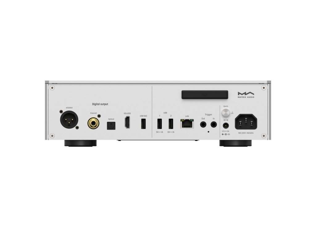 K dispozici jsou dva digitální USB vstupy (USB-A 3.0) pro připojení nejen externího úložiště pro vaši hudební sbírku ale také pro připojení CD mechaniky. Nově také transport disponuje slotem pro vysoce rychlé SSD disky s NVMe protokolem. Velkou novinkou je možnost ripování CD sbírky přímo do volitelného SSD disku, metadata a obaly alb jsou automaticky přidány. S aplikací MA Remote lze navíc informace o albu ručně upravovat případně kopírovat hudební soubory z externího USB úložiště do volitelné interní paměti.