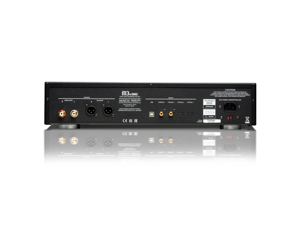 Musical Fidelity M3x DAC je osazen celkem pěti digitálními vstupy (2x koaxiální, 2x optický, USB B), které umožní připojit jakákoliv moderní externí audio zdroj s digitálním výstupem. Pro analogový výstup je převodník vybaven nejen RCA ale také symetrickými XLR konektory pro připojení k high - endovým zesilovačům. Tento vynikající DAC nabízí vynikající kvalitu zvuku s velmi nízký šumem a výjimečně nízké zkreslení.
