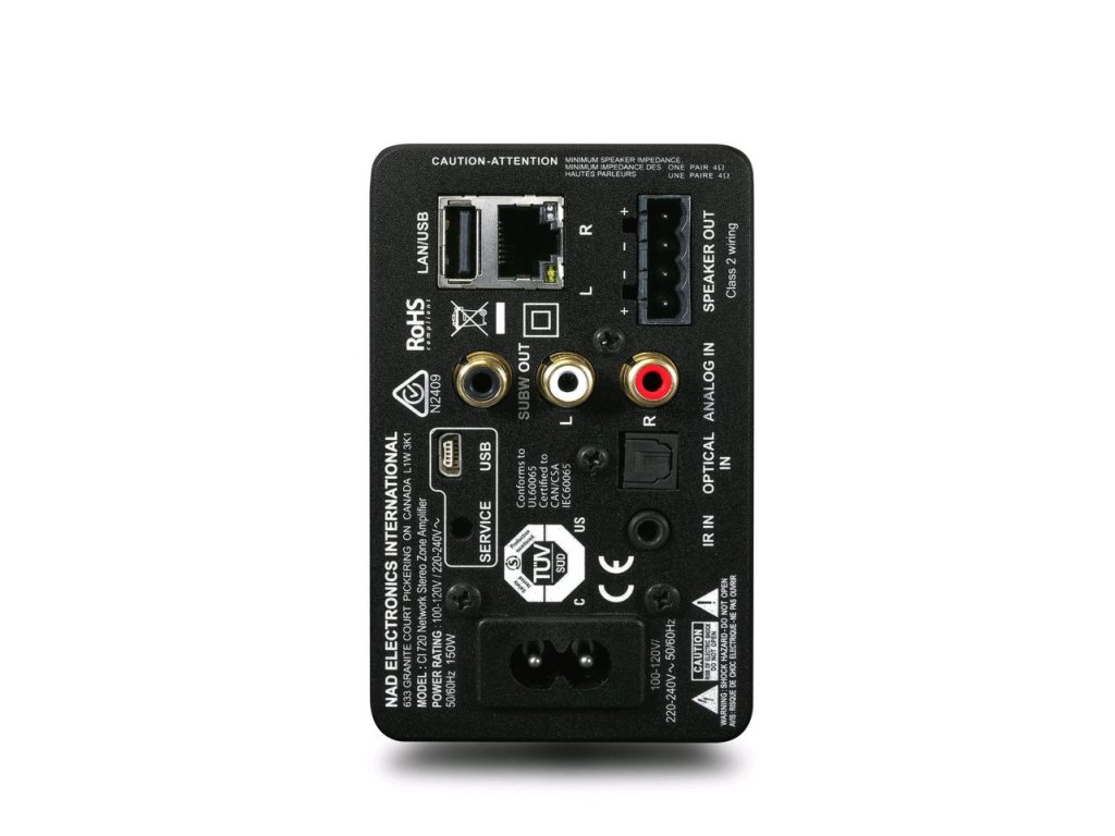 Instalační 1-zónový hudební streamer s výkonovým zesilovačem, založený na systému BluOS, kombinovatelný s produkty NAD a Bluesound pracující na stejném systému. podpora Apple Airplay 2 možnost integrace do řídicích systémů Crestron, Control4, AMX a dalších, nabízíme možnost dodání kompletního API výška modulu 3U, možnost instalace 6 modulů vedle sebe pomocí instalační konzole NAD RM720 (volitelné příslušenství) aktivní termostatické chlazení výkon 2x60W do 8 ohmů podpora HD audia až do rozlišení 24bit/192kHz přehrává hudbu z NAS (formáty FLAC, ALAC, AIFF, WAV, OGG, WMA, WMA-L, AAC a MP3), cloudových hudebních služeb (Tidal, Deezer, Spotify aj.) nebo internetová rádia z celého světa připojení přes Gigabit Ethernet RJ45 možnost vícezónového zapojení až 64 zón, systém lze snadno kdykoli rozšířit o další BluOS zařízení NAD nebo Bluesound kompletní ovládání pomocí aplikace pro Android nebo iOS (česky), k dispozici též desktop aplikace pro Windows nebo OS X (anglicky) odstup signál/šum -110dB (A-weighted), celkové harmonické zkreslení 0,005% vstupy: 1x linkový stereo, 1x optický digitální, 1x USB, IR senzor 3,5 mm jack výstupy: 1x stereo repro terminál Phoenix, subwoofer RCA tepelný ztrátový výkon 4,9W/h, 16,7 BTU/h příkon 6W v pohotovostním režimu s připojením k síti, 150W maximální hlučnost 25 dB rozměry 70 x 120 x 350 mm, hmotnost 1,6 kgDoplňkové parametry