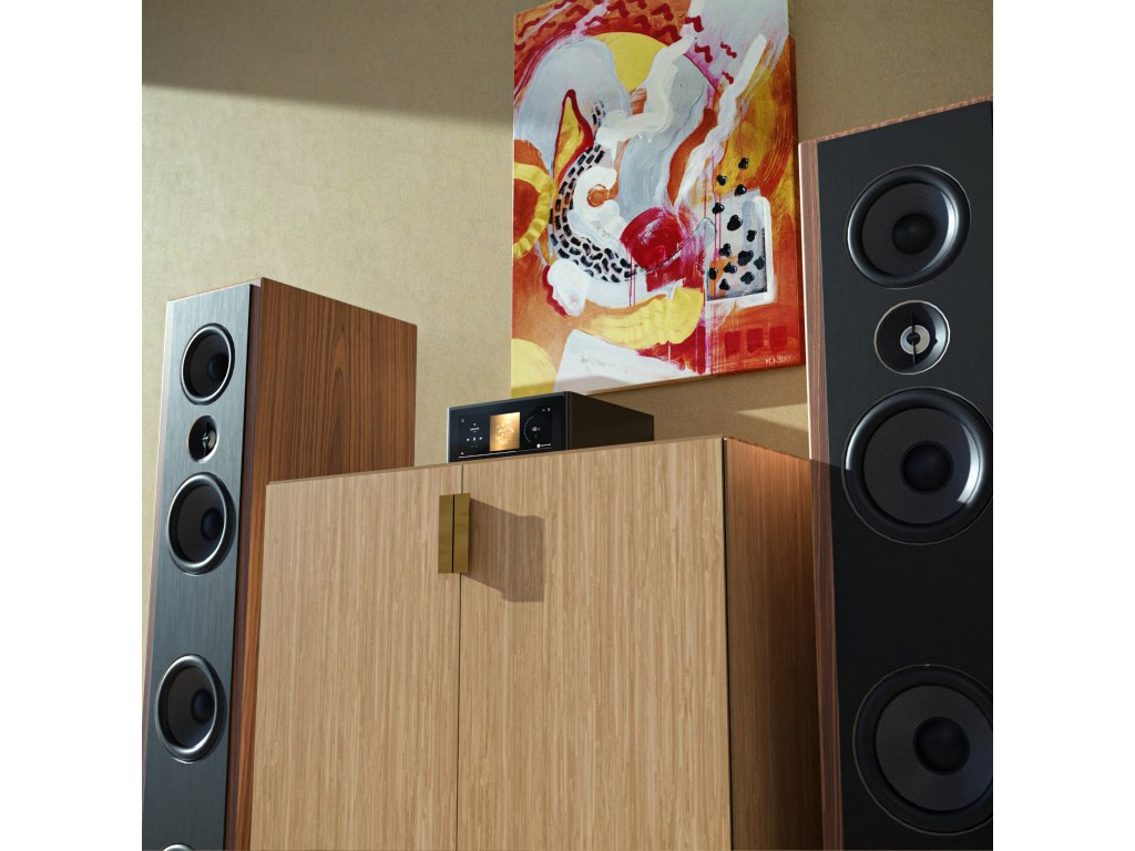 | Vstupy: | 1 x phono MM stereo vstup pro gramofon, 1 x stereo linkový RCA, 1 x digitální koaxiální, 1 x digitální optický TOSLINK, 1 x HDMI eARC, 1 x USB-A, 1 x USB-B mini (pouze pro servisní účely) 1 x Gigabit Ethernet RJ45, 1 x IR 3.5 mm jack |