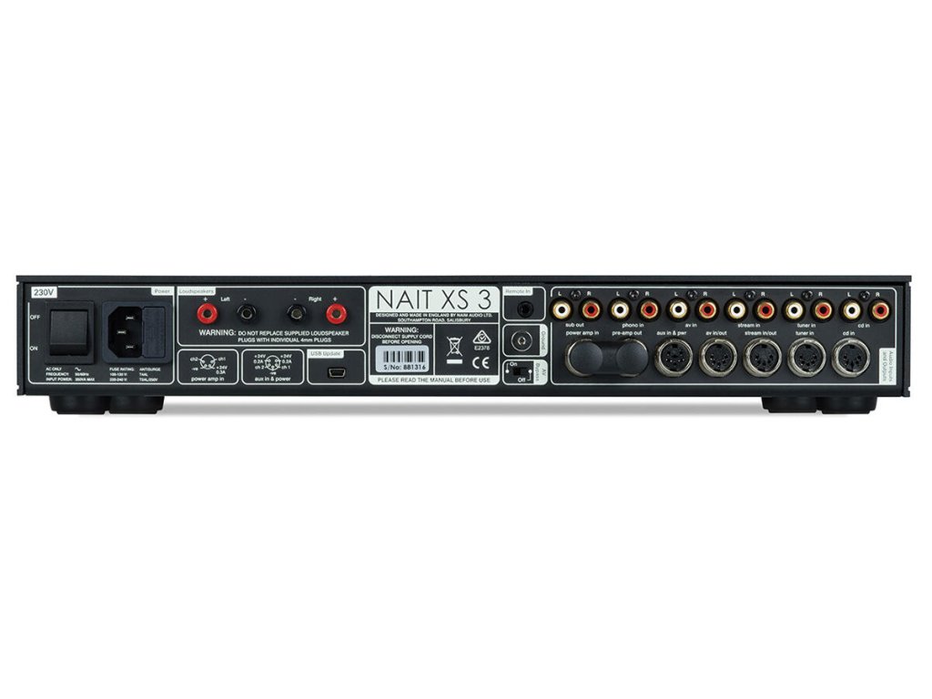 NAIT XS 3 byl výrazně výkonnostně vylepšen, včetně vestavěného gramofonového stupně, takže je ideálním partnerem pro gramofony, ale i streamery, CD přehrávače nebo jakýkoli jiný zdroj hudby, který si lidé chtějí vychutnat s charakteristickým zvukem Naim. NAIT XS 3 nabízí většinu výkonu našeho referenčního modelu SUPERNAIT 3 v jednodušším a štíhlejším balení, které kombinuje 70W výkonový zesilovač s pěti analogovými vstupy a gramofonovým stupněm. Jeho vysoce výkonný předzesilovací stupeň je tak transparentní, jak byste od zesilovače Naim Audio očekávali, a se svým větším sourozencem sdílí také single-ended sluchátkový výstup třídy A. - MM Phono vstup: přes RCA, 47k paralelní 470 pF vstupní impedance, vhodný pro 5 mV kazety - Vstupy linkové úrovně: citlivost 130 mV, vstupní impedance 47k, vhodné pro 2V kazety. - Vstup pro výkonový zesilovač: Zásuvka DIN - Zásuvky pro napájené příslušenství: DIN: +24 V pro gramofonový zesilovač Naim - Výstupy pro reproduktory: Výstupy pro reproduktory: 70 W na kanál do 8 Ω (4mm zásuvky), 100 W na kanál do 4 Ω - Linkové výstupy Variabilní (úroveň): Předzesilovač (DIN), Bi-amp (DIN), Sub (pár RCA) 775 mV, < 50 Ω - Linkové výstupy Pevné (úroveň): (DIN), Stream (DIN) 130 mV, 600 Ω - Sluchátkový výstup: ¼“ (6,35 mm) konektor TRS - Aktualizace: 1x USB mini-B - Dálkový vstup: 1x 3,5 mm Jack na zadní straněDoplňkové parametry