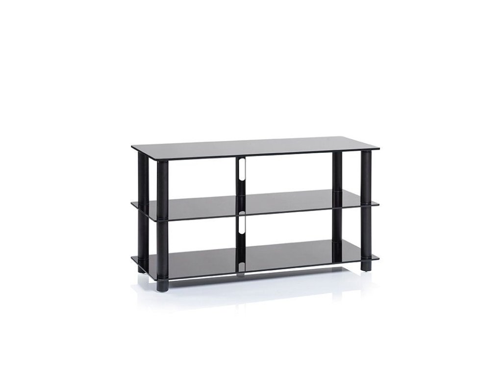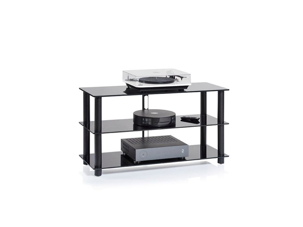 HIFI Stolek NorStone Epur 3, ocelové trubky, vrchní sklo 10mm ostatní 8mm, kolečka pro jednoduší manipulaci, 3 police
