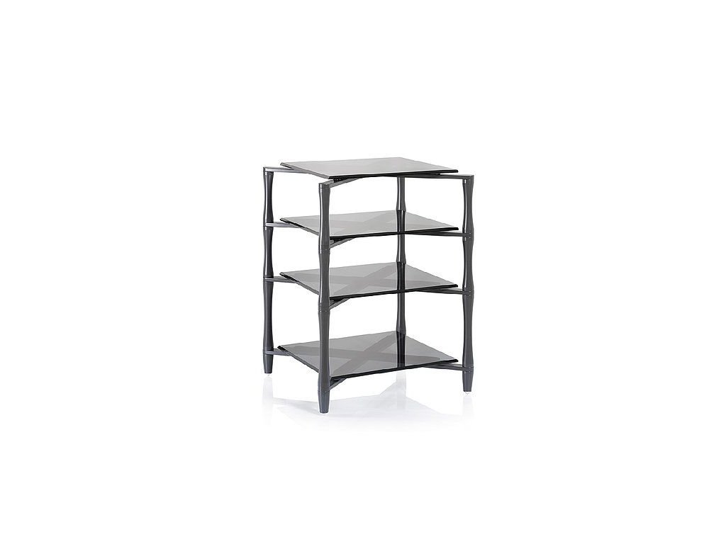 Slim neboli slender žije v duchu svého pojmenování, jelikož se jedná o velmi tenký designový audio nábytek z tmavě šedého kovu Gunmetal. Jeho vzezření je velmi štíhlé, ale přes první dojem také těžké a robustní, stabilní. Součástí stolku jsou úzké tuhé kovové trubky, které jsou zárukou pro to, aby udržel velkou váhu. V nejnižším patře lze pohodlně umístit třeba 50 kg zesilovač, ostatní vrstvy jednotlivě unesou 25 kg. S pomocí speciálních absorpčních pásů, vyrobených z PVC, jsou skleněné desky odděleny, podepřeny od rámu ve tvaru kříže. Pro výrobu byl vybrán kov a kouřové sklo – tradiční materiály, které lze vhodně kombinovat i co se týká estetické stránky produktu. PVC pásky jsou speciálně vyvinuty právě pro tento kus nábytku. Slender je věrný zachování a udržení jemného exkluzívního designu, s nímž nabízí také dokonalou stabilitu.Špičkový hi-fi kus