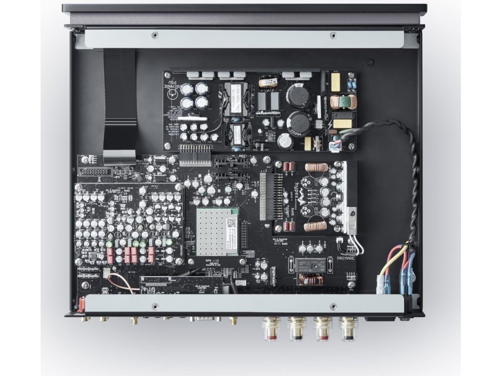 Integrovaný zesilovač je kompaktní, plně vybavený systémový přístroj s 60 W napájení na kanál (8 Ohm). Disponuje digitální až analogovou konverzí do kapacity PCM 384 kHz a DSD 128, a má neomezený přístup k digitálním médiím, včetně systémového řízení, propojitelnosti a inovativních firemních technologií. Jestli má někdo chuť a potřebu přehrávat uložené, streamovat nebo využívat kabelová či bezdrátová média, nabízí se snadné spravování. Postačí k tomu jakékoliv mobilní zařízení a speciální aplikace, potřebná k řízení systému.
