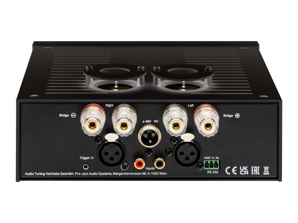 Stejně jako další produkty z řady Pro-Ject RS, je také Amp Box RS2 na vstupní fázi osazen elektronkami s vyrovnávací pamětí s referenční kvalitou. Ačkoliv se jedná o rozměrově malý komponent, neplatí to o jeho výkonu. 2 x 160 W při 4 Ω a extrémní dynamická síla nenechá nikoho na pochybách a pro náročné aplikace se nabízí i možnost mono konfigurace v můstku se špičkovým výkonem 350 W. Zároveň je také dokonalým řešením pro Bi nebo Tri-Ampingové systémy. Připojení je možné prostřednictvím standardních RCA konektorů nebo symetrických XLR zásuvek. Vstupy je možné přepínat na předním panelu, nebo přes rozhraní RS232. Robustní izolované pozlacené výstupní reproduktorové terminály umožňují připojení 4 mm banánkových konektorů, vidliček nebo holého vodiče.