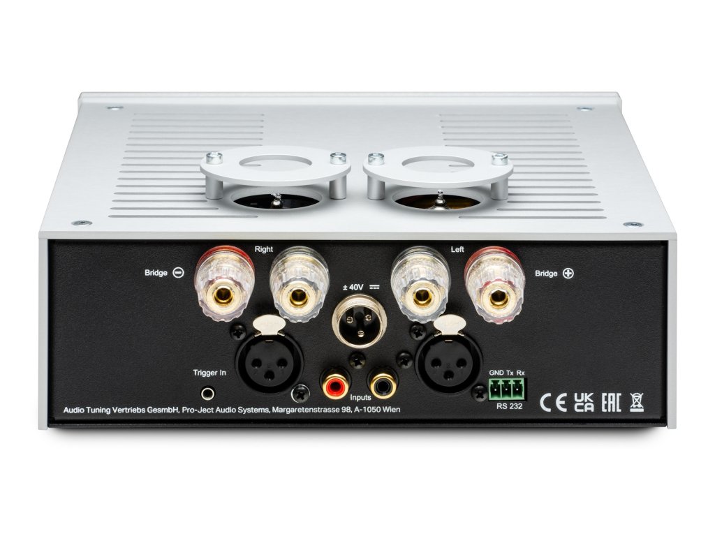 Stejně jako další produkty z řady Pro-Ject RS, je také Amp Box RS2 na vstupní fázi osazen elektronkami s vyrovnávací pamětí s referenční kvalitou. Ačkoliv se jedná o rozměrově malý komponent, neplatí to o jeho výkonu. 2 x 160 W při 4 Ω a extrémní dynamická síla nenechá nikoho na pochybách a pro náročné aplikace se nabízí i možnost mono konfigurace v můstku se špičkovým výkonem 350 W. Zároveň je také dokonalým řešením pro Bi nebo Tri-Ampingové systémy. Připojení je možné prostřednictvím standardních RCA konektorů nebo symetrických XLR zásuvek. Vstupy je možné přepínat na předním panelu, nebo přes rozhraní RS232. Robustní izolované pozlacené výstupní reproduktorové terminály umožňují připojení 4 mm banánkových konektorů, vidliček nebo holého vodiče.