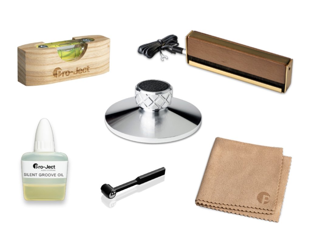 Tato sada je nepostradatelným průvodcem každého milovníka vinylů. Vodováha Level it je nutná pro správné vyrovnání gramofonu na podložce a bude užitečná ještě před prvním přehráváním nebo při každém přemístění gramofonu na nové místo. Další příslušenství pomáhá při péči o gramofon a vaši sbírku gramofonových desek. Pro optimalizaci přehrávání a zlepšení zvuku slouží přítlačná svorka Clamp it a pro prodloužení životnosti a bezproblémový provoz gramofonu je důležitý mazací olej Lube it.
