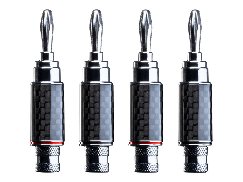 Vodiče jsou zakončeny na obou stranách banánkovými konektory s kontakty z beryliové mědi potažené rhodiem. Tím je dosaženo absolutních hodnot vodivosti a minimálního přechodového odporu. Pro zajištění dlouhodobé schopnosti přenosu byl pro zapouzdření zvolen jako materiál nevodivý cabon, který samotné kontakty dokonale chrání před vnějším rušením a podporuje tak neutralitu. Konektory jsou uzpůsobené pro pevný kontakt.