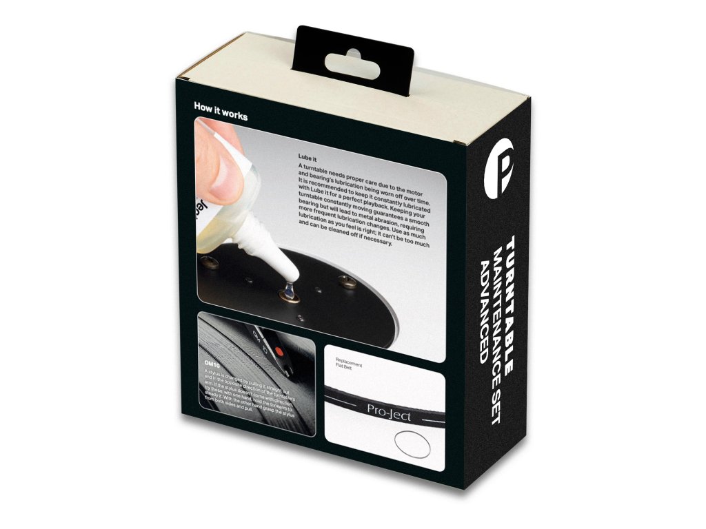 Trvalé udržení zvukových kvalit a prodloužení životnosti každého gramofonu je podmíněno pravidelnou údržbou. Během přehrávání totiž postupně dochází k opotřebení některých zásadních částí gramofonu, nutných pro bezproblémový provoz. Zejména se jedná o hrot přenosky, hnací řemínek a ložisko, jejichž životnost je omezená v závislosti na době přehrávání a provoznímu prostředí. U ložiska dochází k vysychání mazacího oleje, u hnacího řemínku k jeho protahování nebo i přetržení a u přenosky k opotřebení hrotu, což bývá příčinou omezení schopnosti čtení drážky a snížení zvukové kvality. Sada Pro-Ject Maintenance Set Advanced obsahuje právě výše uvedené specifické díly potřebné pro jednoduchou a rychlou údržbu a je optimalizována pro majitele gramofonů Pro-Ject DEBUT III a jeho modelových verzí s přenoskou Ortofon OM10. Údržbu zvládne každý uživatel sám a nevyžaduje žádné specifické znalosti ani dodatečné nastavení nebo nástroje.