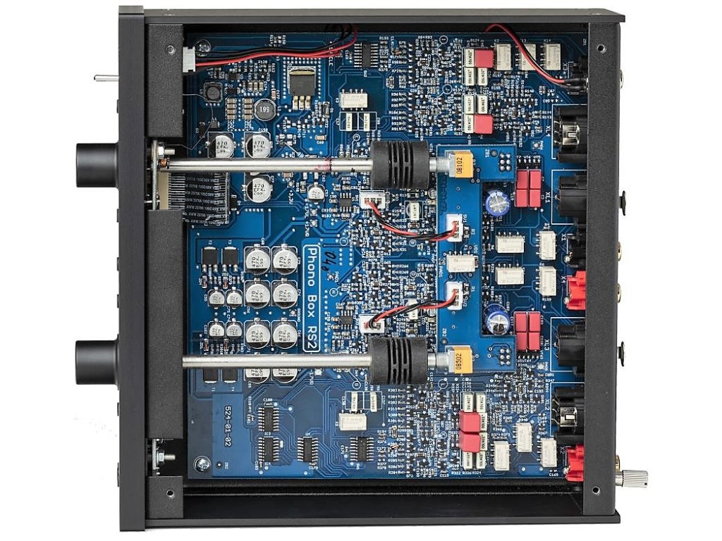 Phono Box RS2 je špičkový phono předzesilovač nejvyšší třídy. Od vstupu k výstupu je 100 % symetrický. Elektronika je plně diskrétní, nepoužívají se žádné operační zesilovače a využívá dělené pasivní RIAA a DECA ekvalizace. S ekvalizací musí být zacházeno a implementováno velmi opatrně a pasivní dělení je nejdražší, ale také jediný způsob, jak dosáhnout ten nejpřesnější zvuk.