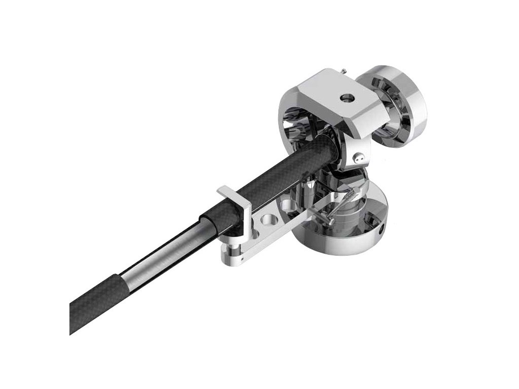 Rovný tubus ramene EVO 10 CA PREMIUM HG je hybridním řešením s kónickým tvarem, který omezuje vznik rezonancí a snižuje pohybující se hmotu ramene. Speciální sendvičovou konstrukci tvoří vnější trubka vyrobená z uhlíkového vlákna, které je lehké a zároveň pevné a vnitřní skrytá hliníková trubice, která pomáhá tlumit vibrace. Toto specifické řešení zabraňuje odrazům stojatých vln, zlepšuje odolnost tubusu vůči rezonancím a zároveň zvyšuje efektivní hmotnost ramene. Signál je veden vodiči z vysoce čistého stříbra. Systém gravitačního anti-skatingu zajišťuje přesnou kompenzační sílu jak na vnitřních, tak na vnějších drážkách gramofonové desky. Protizávaží z nerezové oceli je posuvné na vysoce přesném závitu na dvou TPE kroužcích a zaručuje dokonalé tlumení. Tato konstrukce umožňuje lepší stabilitu a jemnější rozsah pohybu pro ještě přesnější nastavení přítlačné síly.