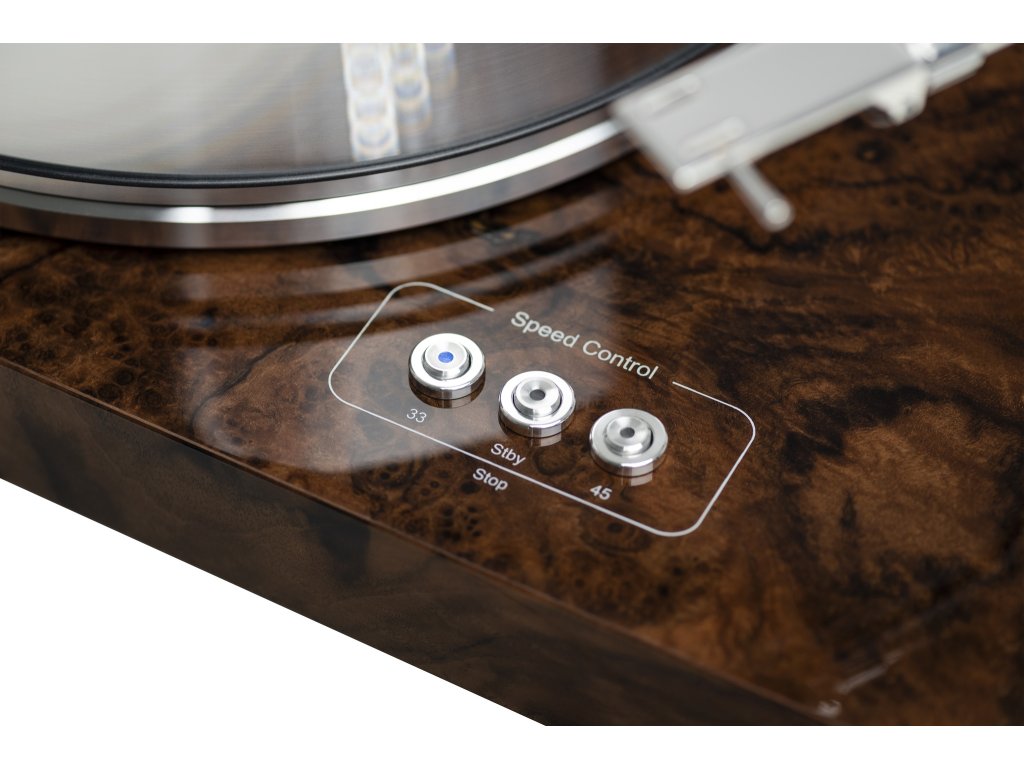 Díky magnetickým podstavám s tlumením TPE plave celý gramofon prakticky na magnetickém polštáři. Šasi z hustého MDF kompozitu obsahuje anti-rezonanční kovový granulát. 10,4 kg těžký talíř s ultra-tichým invertním keramickým kuličkovým ložiskem s magnetickým odpružením je rovněž tlumen TPE. Otáčky jsou řízeny elektronickým speed boxem.