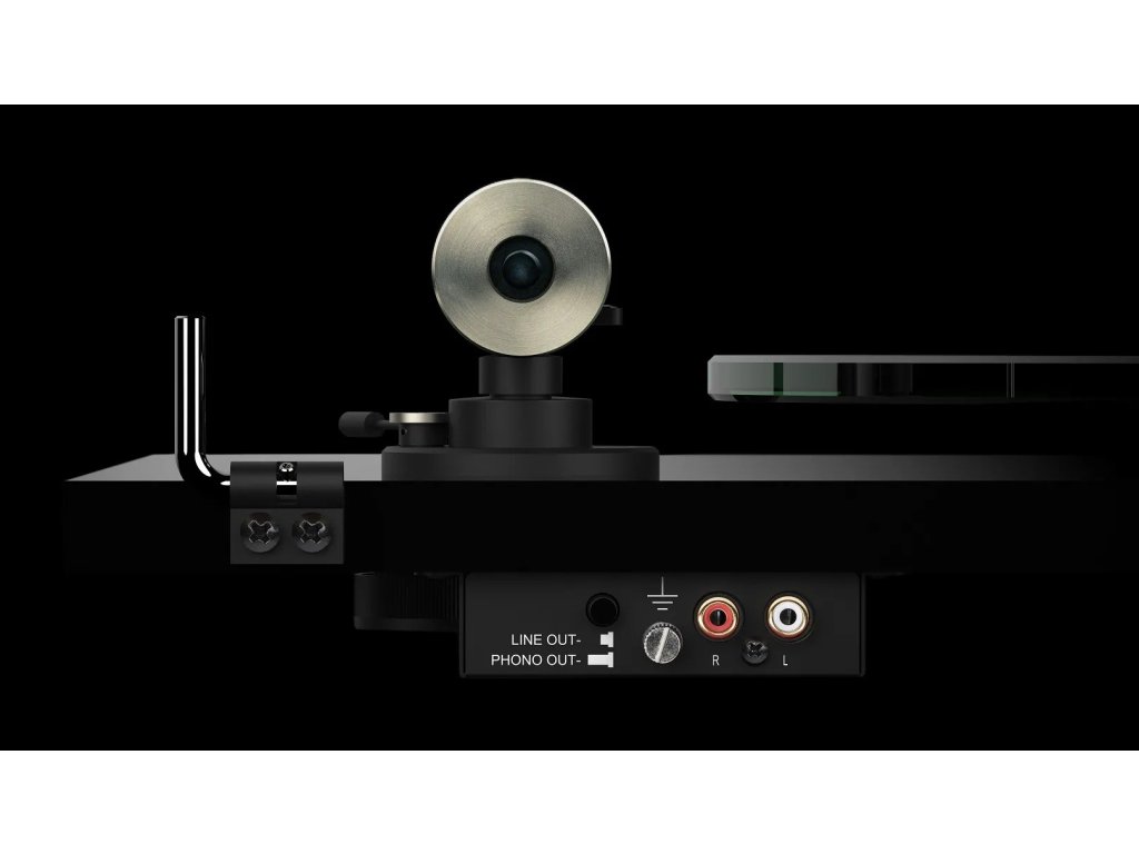 duální dělenou koncepcí a pasivní korekcí RIAA vhodný pro přenosky typu MM. Je to poprvé, co gramofon Pro-Ject v této cenové kategorii, využívá integrovaný phono předzesilovač této kvalitativní úrovně. (Na obrázku panelu elektroniky (vlevo), je patrná velikost předzesilovače). Pro případnou budoucí výměnu přenosky za typ MC, zůstává zachována možnost vypnutí interního předzesilovače jedním stisknutím tlačítka.