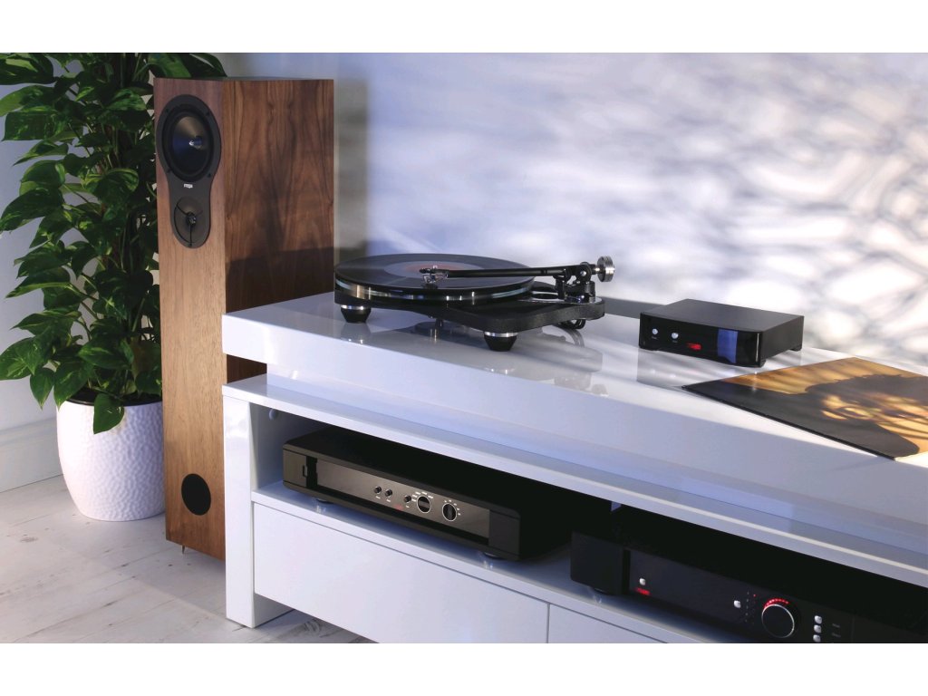High-end designový gramofon Rega Planar 8, inspirovaný ultimátním gramofonem Rega Naiad. Model s precizním ramenem RB880, volitelnou přenoskou Ania, Ania Pro nebo Apheta 3, skleněným třívrstvým talířem, referenčním EBLT řemínkem a podstavcem z pěnového materiálu Tanacast 8. Součástí je i na míru přizpůsobený napájecí zdroj Rega Neo MK2 s přesným elektronickým řízením otáček a pokročilou antivibrační kontrolou. Pevný a odolný podstavec Základem je velmi tuhá a zároveň lehká polyuretanová pěna Tanacast 8, která byla původně vyvinuta pro letecký průmysl a tvoří jádro podstavce. Uzavřená je mezi dvě vrstvy vysokotlakého laminátu, který je mimořádně tenký a zároveň extrémně pevný. Matný povrch gramofonu byl navíc ošetřen proti poškrábání i otiskům prstů. Rameno RB880 Nové rameno RB880 má vylepšené centrální ložisko z nerezové oceli a hliníku, sestavené s přesností na tisícinu milimetru. Téměř nulová vůle a tření všech ložisek ramene přispívá k přesnému čtení zvuku z drážky vinylu. Tenčí nerezové závaží umožňuje jemné nastavení přítlaku pro různé přenosky. Talíř z plaveného skla Celoskleněný třívrstvý talíř o tloušťce 18 mm je složen ze dvou druhů vysoce kvalitních skel Pilkington a svojí vysokou setrvačností přispívá ke stabilitě otáček. Co největší část hmotnosti se nachází na vnějším okraji skleněného talíře, aby se vytvořil větší setrvačníkový efekt, přičemž vnitřek talíře zůstává lehčí, ale stále stejně tuhý. Na míru přizpůsobený motor a zdroj Talíř je poháněn referenčním řemínkem EBLT pomocí 24V synchronního motoru s hliníkovou kladkou, velmi nízkou hladinou hluku a stabilními otáčkami. Motor je řízen zdrojem Neo PSU MK2 s přesným elektronickým řízením otáček a pokročilou antivibrační kontrolou.Doplňkové parametry