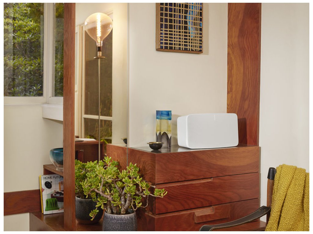 Hi-Fi reproduktor se skvělým zvukem Užijte si živý zvuk, který zaplní celou místnost hudbou s novým reproduktorem Sonos Five, vyladěným známým producentem Gilesem Martinem. Ovládejte ho aplikací Sonos nebo Apple AirPlay2. Hluboké basy Nedostižný akustický design Sonos Five zahrnuje tři basové reproduktory s vysokým zdvihem a uzavřenou architekturou, která eliminuje dozvuky a ozvěny. Ultra široká zvuková scéna Dva precizně natočené postranní výškové reproduktory rozšiřují prostor a vytváření plný stereo zvuk, zatímco prostřední výškový reproduktor optimalizuje přehrávání vokálů. Připoj se a hraj Pomocí linkového vstupu s konektorem 3,5 mm jack můžete k Sonos Five připojit váš gramofon, CD přehrávač nebo další zdroje zvuku. Chytrý stereo zvuk Pokud je reproduktor umístěn horizontálně, oddělí Sonos Five automaticky pravý a levý kanál pro působivý stereo zvuk. Když spárujete dva reproduktory a umístíte je vertikálně, každý z nich se automaticky nastaví na jeden ze stereo kanálů (levý nebo pravý) pro dosažení více detailního stereo efektu a širší zvukové scény. Hlasové ovládání Připojte bezdrátově hlasový asistent (např. Amazon Echo Dot nebo Google Home Mini) a ovládejte hlasem přehrávání hudby a další funkce. Technické specifikace: 6 zesilovačů třídy D 3 středobasové reproduktory, 3 výškové reproduktory Analogový linkový vstup 3,5 mm stereo jack Bezdrátové připojení přes WiFi (802.11b/g, 2,4 GHz) nebo kabelové přes 10/100 Mbps Ethernet zásuvku Rozměry (v x š x h): 203 x 364 x 154 mm Hmotnost: 6,36 kgDoplňkové parametry