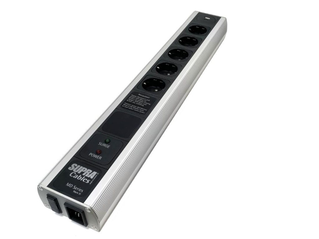 Zásuvky: 5 xSUPRAMCH-16 / EU, Schuko - 1 nefiltrovaná, zbytek NIF filtrován, všechny chráněny SP