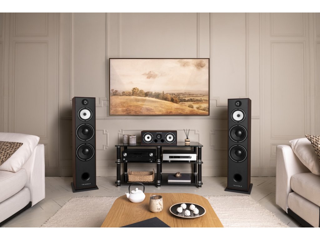 Nová vlajková loď řady, sloupové reproduktory Triangle Borea BR10 přinášejí cenově dostupný zvuk bez kompromisů. Dva mohutné basové měniče s průměrem až 21 cm a předním vývodem bass-reflexu dokážou reprodukovat frekvence již od 30 Hz. Hladké střední pásmo a příjemnou tonalitu zajišťuje osvědčený 16 cm středobas z přírodní celulózy. O vrchní stranu spektra se stará 25 mm výškový měnič EFS z hedvábné kaloty pro co nejširší, ale za to nejpřesnější rozptyl zvuku v místnosti. Svojí velikostí a výkonem jsou reproduktory Borea BR10 vhodné do větších prostor nad 30 m2 a se svou 200 wattovou zatížitelností zvládnou i ty nejvýkonnější zesilovače na trhu. Zapojte je do sterea nebo domácího kina a užijte si úderný zvuk s těmi nejhlubšími detaily. Všeuměl pro hi-fi i domácí kino BR10 dokáže reprodukovat nejširší spektrum zvuku z řady Borea, což jej činí nesmírně všestranným. Svou velikostí a výkonem je vhodný do větších místností nad 30 m2, ve kterých jej můžete zapojit do klasické hi-fi sestavy nebo jako přední kanál domácího kina. V obou případech zajistí bohatý a úderný přednes, který daleko překonává svoji cenovku. Basové měniče nové generace Na rozdíl od zbytku řady Borea využívá BR10 novou generaci basových měničů o průměru až 21 cm. Původní membrána ze skelných vláken a výkonný systém magnetů byly doplněny kompletně propracovaným košem a novým způsobem zavěšení. Větší měnič je tak pod precizní kontrolou a zajišťuje pevný, ale zároveň vzdušný zvukový přednes. Oddělené výhybky a dvojitý repro terminál Novinkou je separátní systém výhybek, který kompletně izoluje nízké frekvence od středních a vysokých frekvencí. Dvojitý repro terminál na zadní straně umožňuje BR10 zapojit jak v bi-wire, tak v bi-amp režimu pro lepší separaci příchozího signálu a výsledné zlepšení preciznosti reprodukce. Absorpční systém DVAS DVAS (Driver Vibration Absorption System) je proprietární systém vyvinutý inženýry Triangle, který pohlcuje vibrace vznikající pohybem silných basových měničů. Sloupové reproduktory řady Borea jsou vybaveny vnitřními výztuhami z MDF a EVA pěny, které jsou umístěny proti basovým měničům, aby zabraňovaly zbytkovým vibracím směřujícím do skříně reproduktoru. Zvukový podpis řady Borea I přes vylepšení v oblasti basového pásma, zlepšení preciznosti a snížení rezonance je model BR10 stále součástí rodiny Borea. Zdědil všechny nejlepší technologie a materiály včetně osvědčeného výškového měniče EFS a středobasového měniče z přírodní celulózy pro zachování celkové tonality. Konzistentní zvuk napříč řadou zajistí to, že můžete reproduktory bezproblémově kombinovat například v sestavě domácího kina.Doplňkové parametry