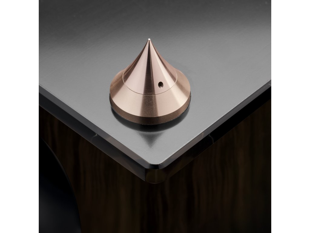 Antal a Comete jsou dva ikonické modely značky. Odrážejí filozofii společnosti: zpřístupnit zvuk co nejširšímu spektru zákazníků a vzbudit emoce pomocí zvukového přednesu. Antal 40th sloupový reproduktor je vybaven novým hořčíkovým (eloxovaný růžovým zlatem) kupolovým výškovým měničem, který nabízí vysokou účinnost a kontrolované zkreslení. Hořčík spojuje dvě požadované vlastnosti: lehkost a tuhost. Antal 40th profituje také ze dvou nových basových měničů. Použití kompozitní membrány vyrobené z dřevní buničiny, lnu a uhlíkových vláken, spojené s velkoryse dimenzovaným magnetem, zajišťuje pozoruhodné podání nižších frekvencí. Bohatý a čistý zvuk středobasového měniče vyrobeného z přírodního celulózového papíru, kterým je TRIANGLE znám, dokonale doplňuje tento akustický design s překvapivými zvukovými vlastnostmi. Každý reproduktor obsahuje sadu příslušenství s různými přizpůsobitelnými hroty, které lze použít v závislosti na podlaze. Edice 40th Anniversary Edition byla navržena a vyvinuta důkladně, aby vám nabídla výjimečný hudební zážitek. Tento reproduktor krásně zapadne do místností od 30 do 50 m2.Doplňkové parametry