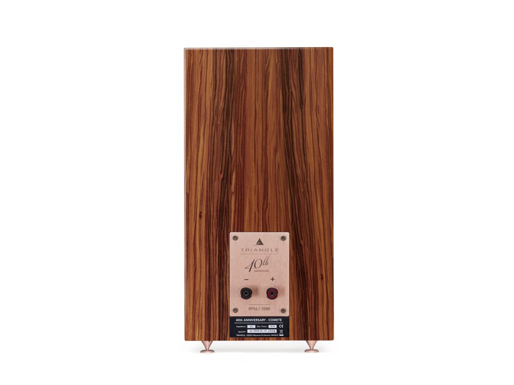 Antal a Comete jsou dva ikonické modely značky. Odrážejí filozofii společnosti: zpřístupnit zvuk co nejširšímu spektru zákazníků a vzbudit emoce pomocí zvukového přednesu. Regálový reproduktor Comete svedl generace audiofilů svým prostorným zvukem a neuvěřitelným podáním nižších frekvencí. Tato výroční edice 40th Anniversary Edition se řídí stejnými principy a těží z nejnovějších optimalizací modelu Antal. Je vybaven novým hořčíkovým (eloxovaný růžovým zlatem) kupolovým výškovým měničem, který nabízí vysokou účinnost a kontrolované zkreslení. Hořčík spojuje dvě požadované vlastnosti: lehkost a tuhost. Comete 40th profituje také ze dvou nových basových měničů. Použití kompozitní membrány vyrobené z dřevní buničiny, lnu a uhlíkových vláken, spojené s velkoryse dimenzovaným magnetem, zajišťuje pozoruhodné podání nižších frekvencí. Bohatý a čistý zvuk středobasového měniče vyrobeného z přírodního celulózového papíru, kterým je TRIANGLE znám, dokonale doplňuje tento akustický design s překvapivými zvukovými vlastnostmi. Každý reproduktor obsahuje sadu příslušenství s různými přizpůsobitelnými hroty, které lze použít v závislosti na podlaze. Edice 40th Anniversary Edition byla navržena a vyvinuta důkladně, aby vám nabídla výjimečný hudební zážitek. Díky speciálnímu stojanu na reproduktory, S04 40th Anniversary, je tento reproduktor ideální pro místnosti menší než 25 m2.Doplňkové parametry