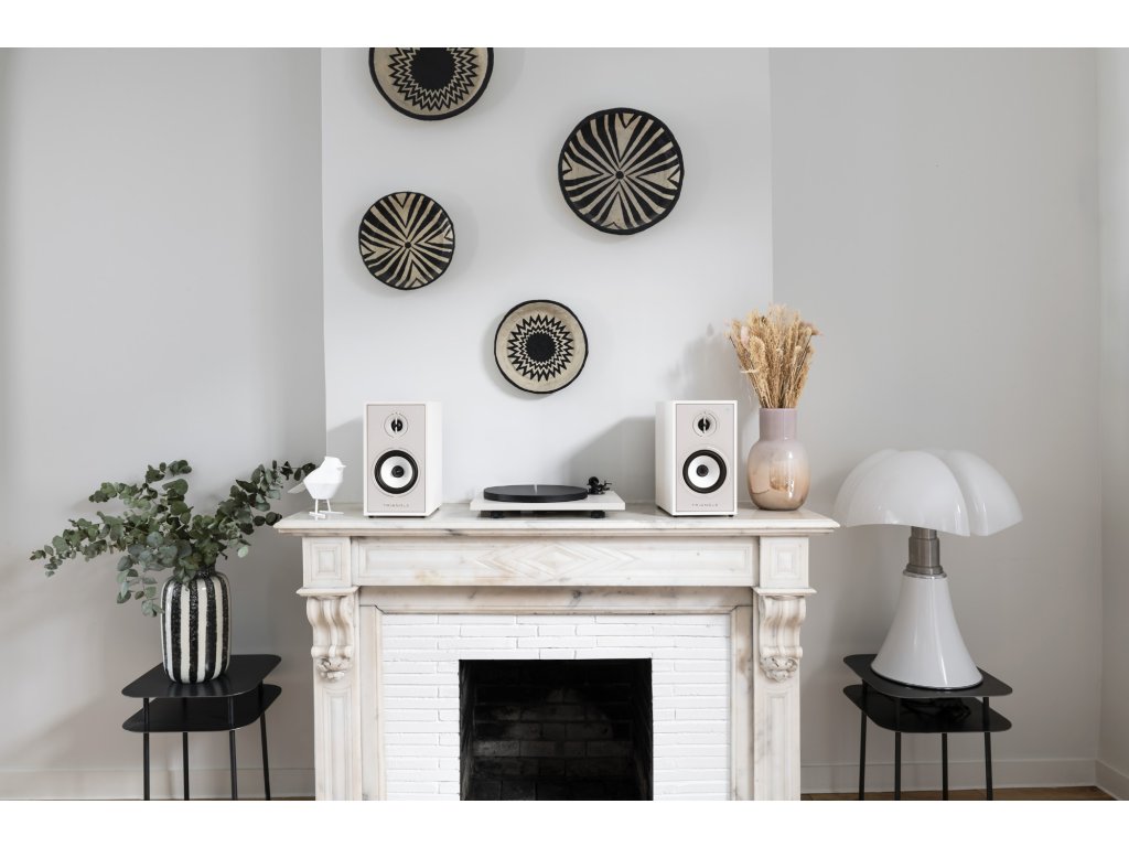 Moderní gramofon Triangle Lunar 1 nabízí ideální kombinaci nostalgického zážitku z poslechu hudby, vysoké kvality reprodukce zvuku a moderního designu v několika barevných provedeních. Lunar 1 byl navržen ve spolupráci s rakouským výrobcem gramofonů Pro-Ject, který je světovým lídrem v tomto odvětví. Kvalitu zpracování i ekologickou udržitelnost zaručuje lokální výroba v Česku a na Slovensku. moderní hifi gramofon pro 33 a 45 otáčkové desky přenoska Ortofon OM-5E s eliptickým diamantovým stylusem odborně vyladěné rameno z lehkého hliníku vyztužený talíř unášený nejnovějším řemínkem pevná základna s vysokou hustotou (25 kg/m3) pozlacené RCA konektory a kabel z bezkyslíkaté mědi navržen ve spolupráci s rakouským výrobcem Pro-Ject dostupný v bílé, černé, krémové, modré nebo zelené součástí je průhledný kryt pro ochranu před prachem Pevná základna ze dřeva Lunar 1 má základnu z dřevovláknité desky o vysoké hustotě (25 kg/m3), která pohlcuje vibrace a zaručuje vysokou čistotu zvuku. Žebrovaný talíř je vyroben z ABS polymeru, který vytváří platformu bez rezonancí. Kompletně nastaven z výroby Lunar 1 byl odborně nastaven z výroby tak, abyste k jeho instalaci nepotřebovali doktorát. Rameno bylo osazeno přenoskou a odborníkem vyladěno k dokonalosti. Vám tak zbude už jen nasadit řemínek na unášeč a jste připraveni hrát. Přenoska Ortofon a hliníkové rameno Lehké 22 mm dlouhé hliníkové ramínko s nízkým třením bylo navrženo do nejmenších detailů. Svojí konstrukcí je optimalizováno pro osazenou přenosku Ortofon OM-5E, která je vybavena eliptickým diamantovým stylusem. Kompatibilní s 33 a 45 otáčkovými deskami Aby byl gramofon dokonale kompatibilní s většinou vinylových desek, rychlost otáčení se mění pouhým stisknutím přepínače na boku gramofonu. Přepínání z 33-rpm na 45-rpm desky je rychlé a snadné. Kvalitní materiály Kvalitu zpracování i ekologickou udržitelnost zaručuje lokální výroba v evropských továrnách Pro-Ject. Přiložený gramofonový kabel je vybaven vodiči z vysoce čisté bezkyslíkaté mědi (HP-OFC) a pozlacenými RCA konektory, které zajišťují dokonalou vodivost signálu.Doplňkové parametry