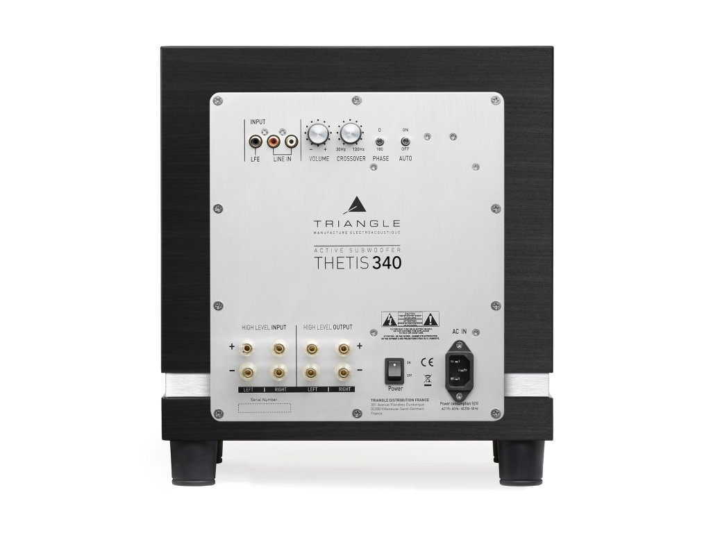 Všestranný subwoofer vybaven 250 mm měničem a zesilovačem třídy D o výkonu 250 W RMS, a špičkovým výkonem až 400 W. Díky strmým sklonům výhybky je sladění tohoto subwooferu s hlavními reproduktory snadné. Použitím principu bassreflexu si zachovává omezenou hlasitost a zároveň nabízí překvapivý výkon a jedinečný pohlcující zážitek. Subwoofery Thetis jsou vybaveny mnoha vstupy, což umožňuje jejich propojení se všemi typy zesilovačů. Zahrnují přímý vstup LFE, standardní vstupy RCA a vysokoúrovňové vstupy pro zesilovače bez vhodného výstupu. Můžete si nastavit hlasitost, fázi a frekvenční náběh, abyste dosáhli dokonalé souhry s hlavními reproduktory. Každý subwoofer Thetis se dodává s dálkovým ovládáním, displej LED na předním panelu poskytuje přehled o nastavení zvuku. Je vybaven funkcí automatického zapnutí. Automatický STANDBY je možný také aktivací funkce AUTO subwooferu.Doplňkové parametry