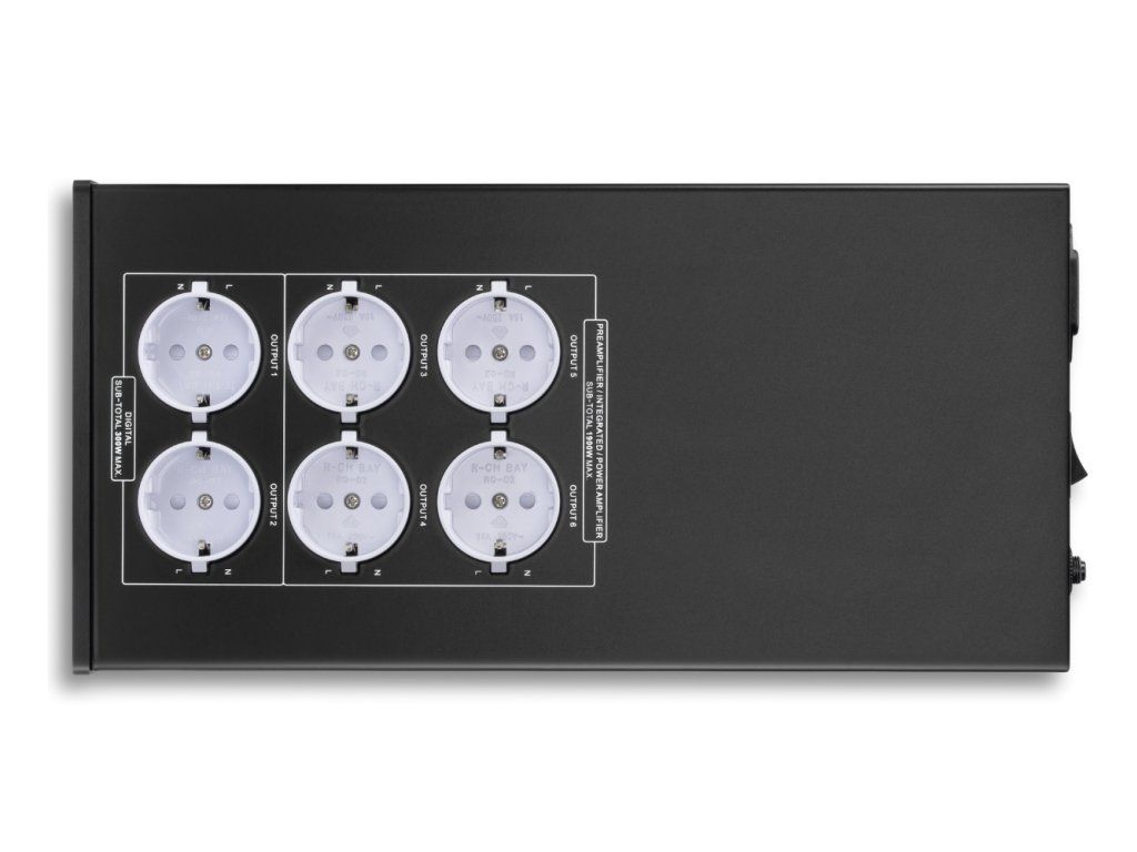 Outputs: 2 x Schuko sockets for digital (300 W), 4 x Schuko sockets for analogue (1900 W)