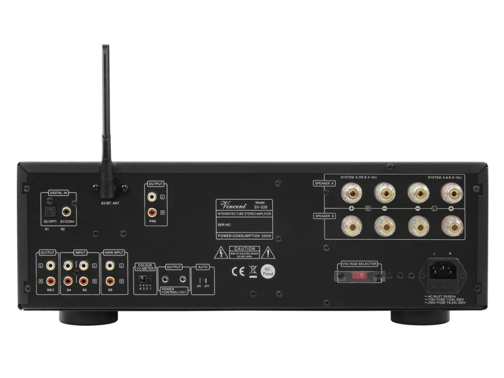 Model SV-228 se představuje ve zcela novém „outfitu“ s VU metrem zabudovaným do předního panelu. Možnosti barevného podsvícení indikátorů lze nastavit posuvným přepínačem na zadní straně, aby vám ideálně padnul k ostatním komponentům sestavy.
