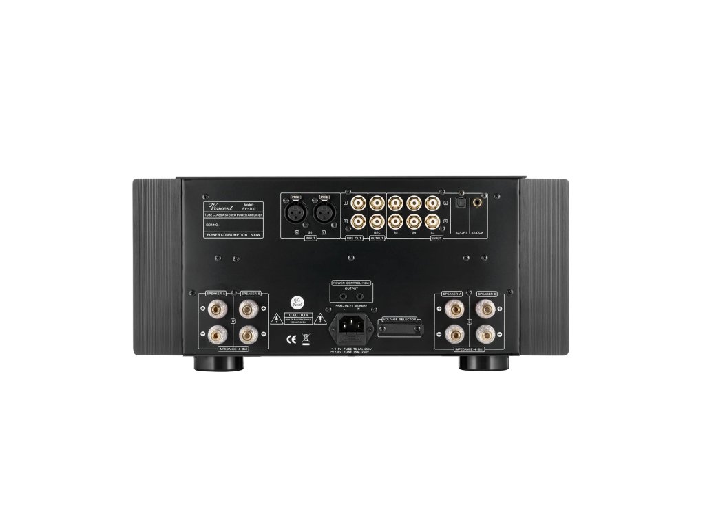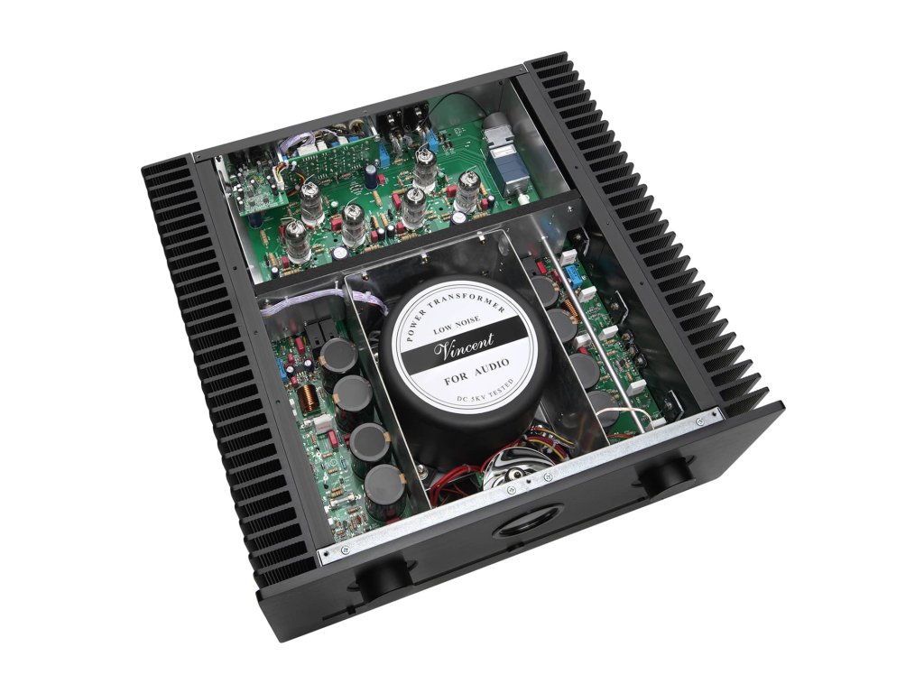 Aby se minimalizovalo přeslechování a dosáhlo velmi nízké úrovně zkreslení, Vincent se rozhodl pro symetrický duální mono design. V sekci předzesilovače pracují tři elektronky na kanál (1 x 12AX7, 2 x 12AU7) v režimu SRPP (Shunt Regulated Push-Pull) pro přesné basy a vylepšený výkon ve středním a vysokém rozsahu frekvencí.